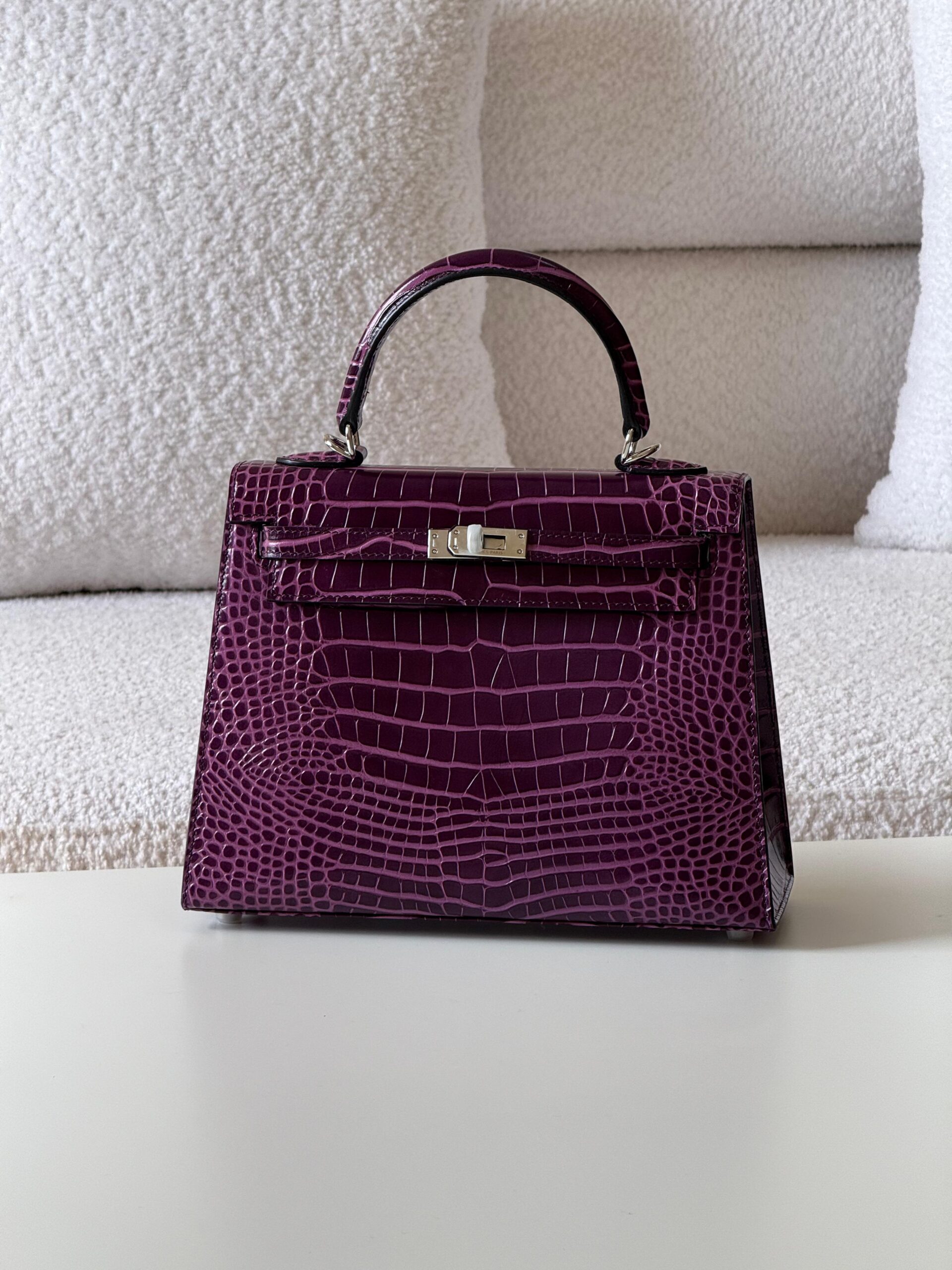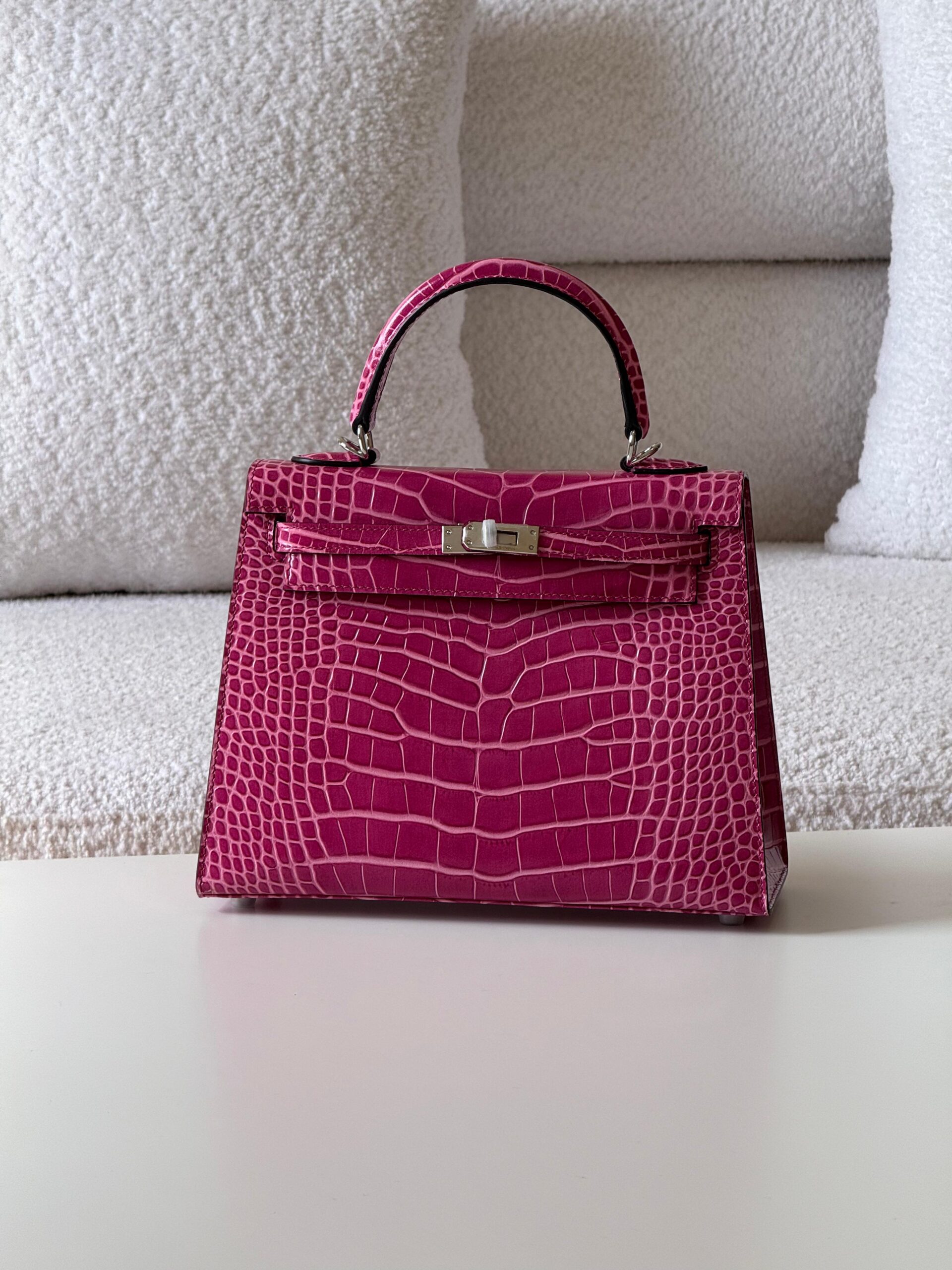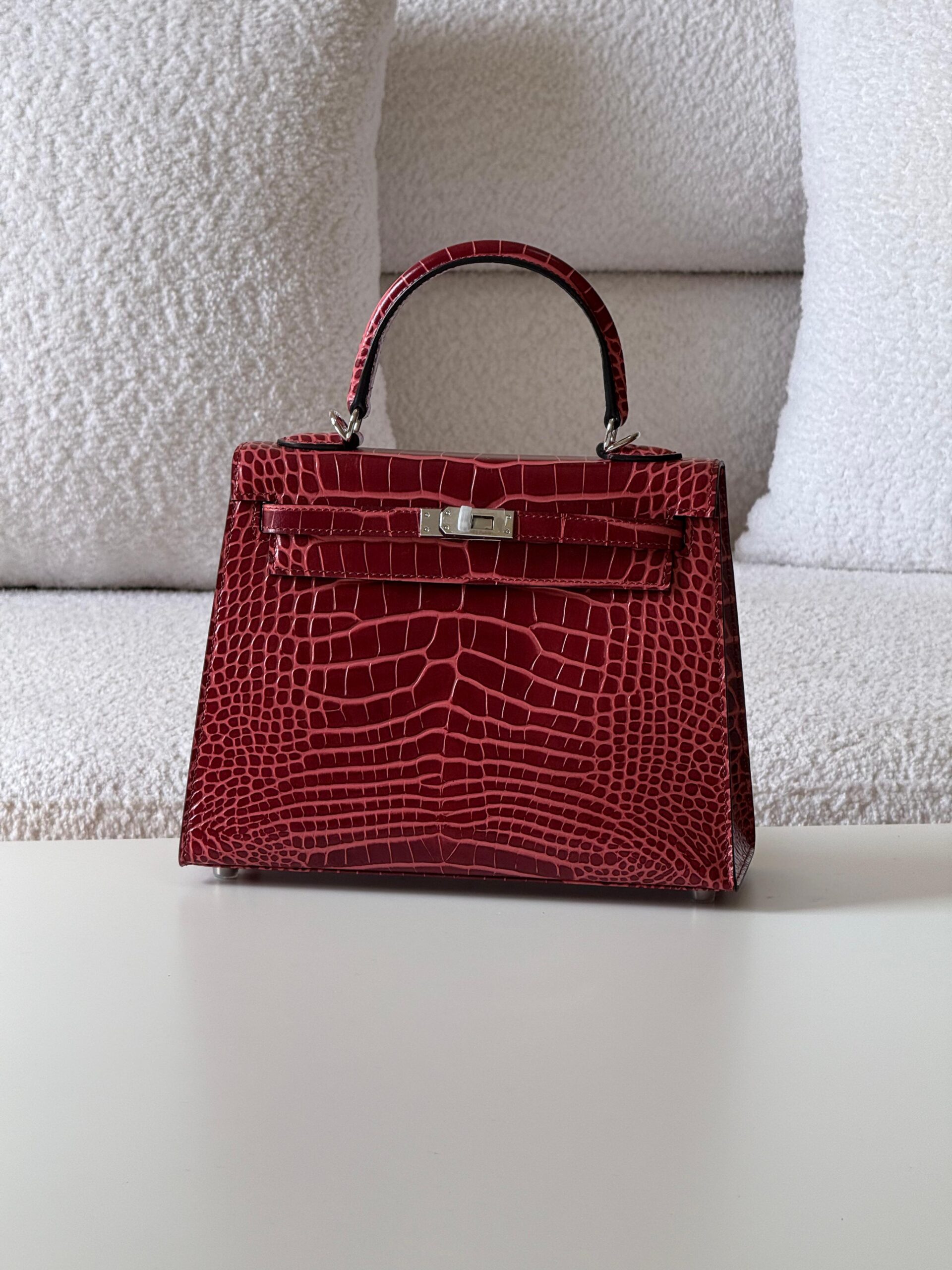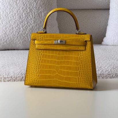 The HM Kelly crocodile leather bag is a rare masterpiece of timeless elegance, crafted from genuine exotic skin with flawless details. Shop now at Luxoriyaa with free worldwide shipping.