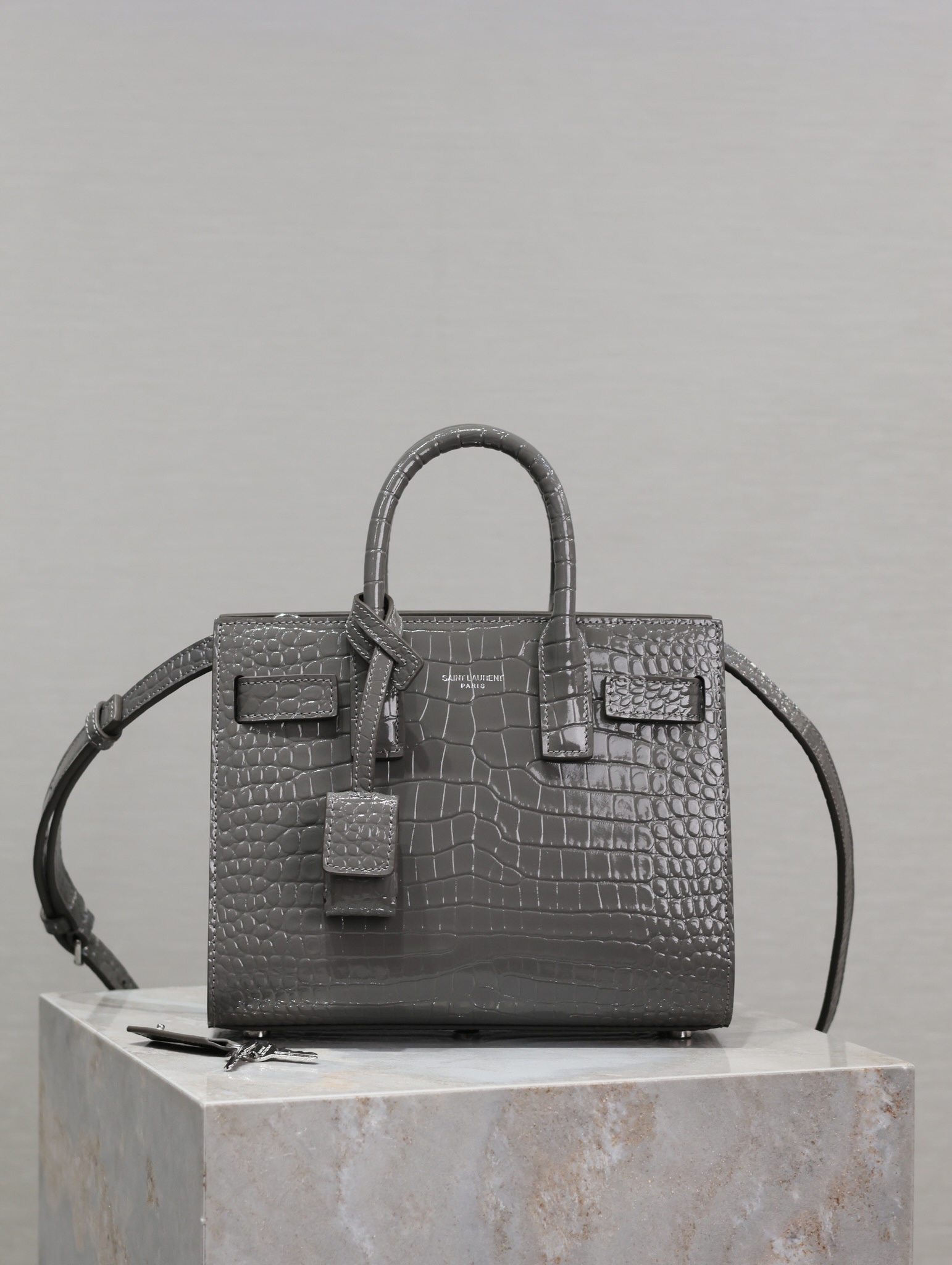 Perfect for both business and leisure, the Sac de Jour Crocodile Tote Bag elevates any outfit. Carry it by the structured handles or use the detachable strap for a more relaxed, chic appeal.