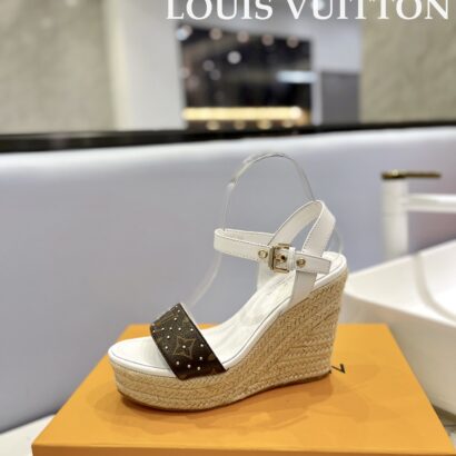The Lv Starboard Wedge Sandals are designed for modern women who seek both sophistication and comfort in their footwear. Featuring a stylish wedge silhouette, these sandals provide graceful height while maintaining stability and ease of movement, making them ideal for daily wear, travel, and warm-season styling.